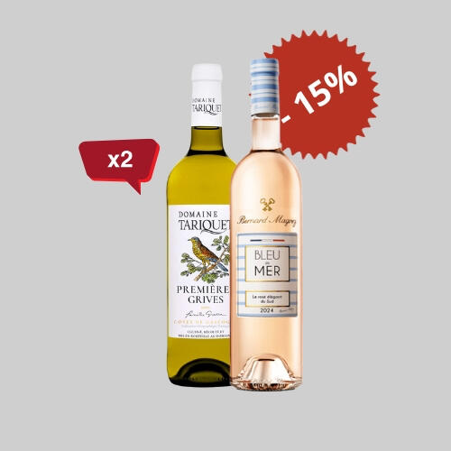 Pour l'achat de 2 bouteilles de vin, un remise de 15% sera effectuée immédiatement lors de l'encaissement sur les deux produits.